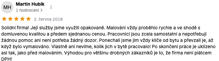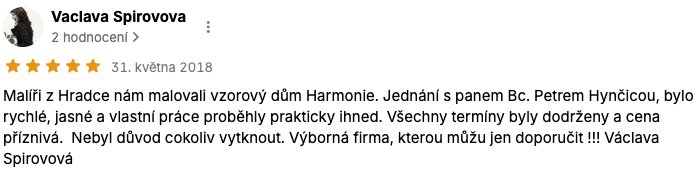 Na trhu působíme již řadu let a za tu dobu jsme vymalovali stovky objektů. Naši zákazníci oceňují: osobní přístup, férové ceny, rychlé a čisté provedení a profesionální práci s důrazem na detail. Každou zakázku bereme individuálně – domluvíme se na termínu, barvách i postupu, který Vám bude vyhovovat.